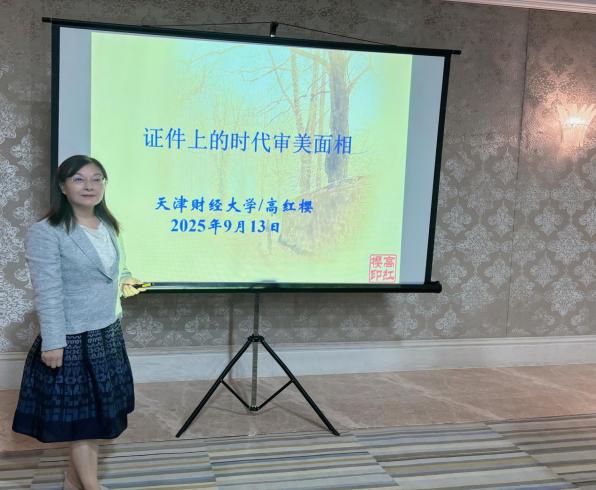 高红樱教授与孟繁静老师应邀参会,并分别在“中华美学精神的当代传承与理论创新”和“艺术哲学”分论坛作主题汇报。高红樱教授以《结婚证文本形式变迁中的时代美学面相》为题,系统梳理了百年结婚证书文本形式的演变历程,从中可见社会审美变迁与情感观念的更迭,凌建英教授和向丽教授表示,该研究引证有据,并且是有温度有感觉的美学研究,体现出鲜明的现实关怀与文献价值,获得与会专家的一致好评。孟繁静老师汇报的《场景延伸:电影“第二自然”与旅游融合的环境反思》一文,深入阐释了“第二自然”的视觉化呈现及其对旅游行为的引导机制,进而探讨自然景观优势与可持续保护之间的张力,引发与会者的广泛讨论,大家纷纷表示这类研究是美学的“活态”展现,受益颇多。